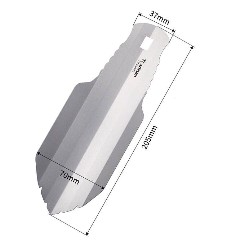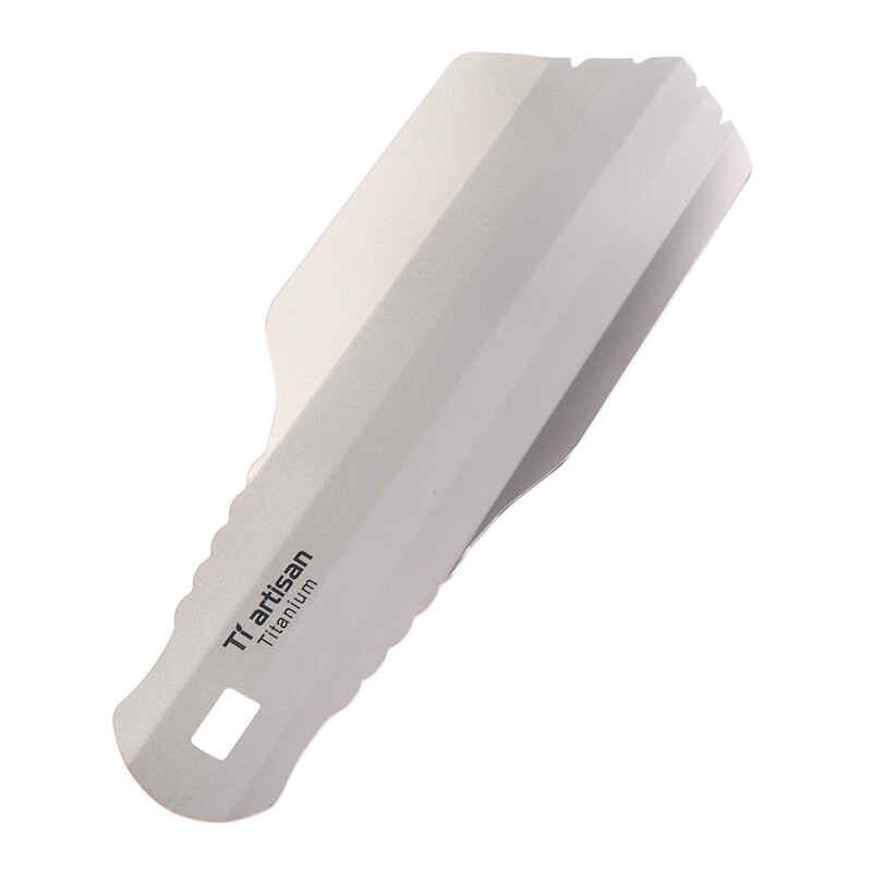 Ultralight Backpacking Potty Trowel Outdoor Compact Poop Shovel/Trowel Multi Tool for Hiking Camping and Survival Model NO: Ta6701 Material: Pure titanium Color: silvery Brand: Tiartisan Item Dimensions LxWxH: 205 x 70 x 37mm Net weight: about 35g Item Thickness: 0.7mm Package: clothe bag